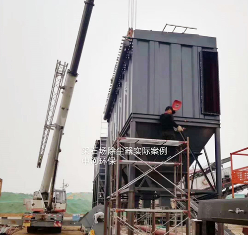 采石場用布袋除塵器安裝進行中-河北中河環(huán)保